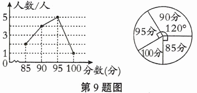 9. 在“经典诵读”比赛活动中,某校甲、乙两班各12名学生的参赛成绩如图所示,则甲班学生参赛成绩的中位数