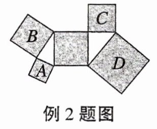 例2 如图,5个阴影四边形都是正方形,所有三角形都是直角三角形. 若正方形$A,C,D$的面积依次为4,5,20,则正方形$B$的面积为(