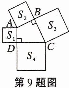 9. 如图,在四边形$ABCD$中,$∠ABC= ∠CDA= 90^{\circ }$,分别以四边形$ABCD$的四条边为边长,向外作四个正方形,面积分别为$S_{1},S_{2},S_{3},S_{4}$. 若$S_{1}= 8,S_{2}= 11,S_{3}= 15$,则$S_{4}$的值为______