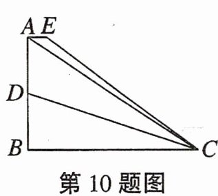 10. 如图,在$\triangle ABC$中,$∠ABC= 90^{\circ },AB= 18,D是边AB$的中点,$AE⊥AB$,垂足为$A$,连接$CD$,$CE$,$CD平分∠BCE$,且$CE= 10AE,AE= 3$,则四边形$ADCE$的面积为______