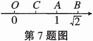 7. 如图,数轴上表示1和$\sqrt {2}$的对应点分别为A,B,点B关于点A的对称点是C,O为原点.