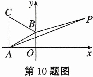 10. 如图,$A(-\sqrt{3},0)$,$B(0,1)分别为x$轴,$y$轴上的点,$\triangle ABC$为等边三角形,点$P(3,a)$在第一象限内,且满足$2S_{\triangle ABP}= S_{\triangle ABC}$,则$a$的值为