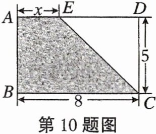 10. 如图,在长方形$ABCD$中,$BC = 8$,$CD = 5$,$E为边AD$上一动点,连接$CE$,随着点$E$的运动,四边形$ABCE$的面积也发生变化.