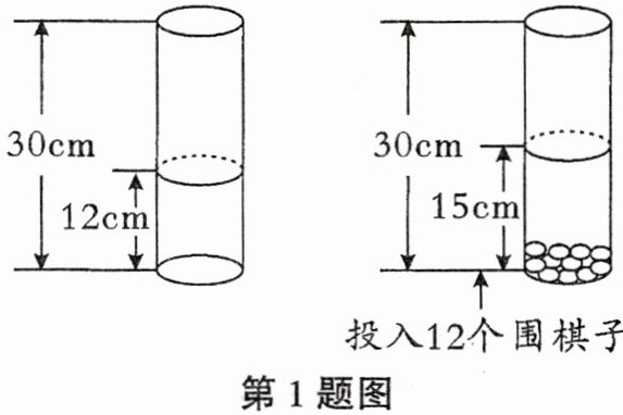 1. 我们知道乌鸦喝水的故事。现在来做一个道理相同的实验:如图,在圆柱形玻璃桶里已有一定量的水,将大小相同的围棋棋子一个个慢慢放入玻璃桶中。显然,在有水溢出之前,每投入一个棋子,桶里水位的高度都会有变化。