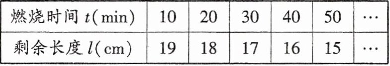 (3)写出这根蜡烛可燃烧部分的长度l与燃烧时间t的关系式。