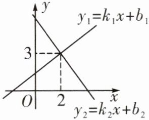 5. 如图,一次函数$y_{1}= k_{1}x+b_{1}(k_{1}≠0)与y_{2}= k_{2}x+b_{2}(k_{2}≠0)相交于点(2,3)$,则关于 x 的不等式$k_{1}x-k_{2}x≥b_{2}-b_{1}$的解集是______.