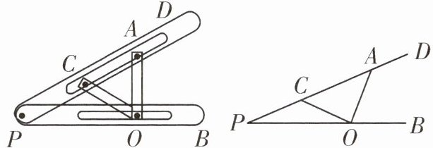 13. “三等分角”大约是在公元前五世纪由古希腊人提出来的,借助如图所示的“三等分角仪”能三等分任一角.这个三等分角仪由两根有槽的棒$PB$,$PD$组成,两根棒在$P点相连并可绕P$转动,$C$点固定,$CP= OC= OA$,点$O$,$A$可在槽中滑动,若$\angle AOB= 75^{\circ}$,则$\angle P$的度数是______.