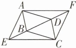 7. 如图,在$//ogram ABCD$中,连接对角线$BD$,点$E和点F是直线BD$上两点,且$BE= DF$.