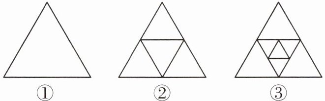 7. 如图,①是一个三角形,分别连接这个三角形三边中点得到图②,再连接图②中间小三角形三边的中点得到图③,按这样的方法进行下去,第$n$个图形中共有三角形的个数为