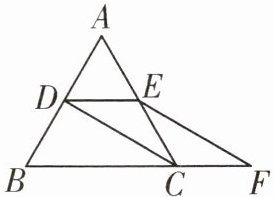 8. 如图,等边$△ABC的边长是4$,$D$,$E分别为AB$,$AC$的中点,延长$BC至点F$,使$CF= \frac{1}{2}BC$,连接$CD和EF$.