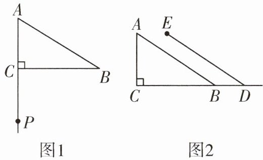 (2)如图2,将线段$AB水平向右进行平移m个单位长度得到线段ED$,请使用不含刻度的直尺与圆规过点$E作射线CD的垂线EF$,与$CD交于点F$(不写作法,保留作图痕迹并书写相应结论),若点$F在点B$的左侧,$CD= 12$,$FB= 5.5$,则$m= $