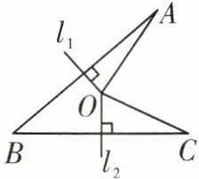 4. 如图,线段$AB$,$BC的垂直平分线l_{1}$,$l_{2}相交于点O$,若$\angle B = 40^{\circ}$,则$\angle AOC$的度数是______.