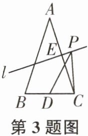 3. 如图,在$\triangle ABC$中,$AB = AC$,$BC = 4$,$S_{\triangle ABC} = 20$,$D为BC$边的中点,$AC的垂直平分线l交AC于点E$,若$P为直线l$上一动点,则$\triangle PDC$的周长的最小值为()