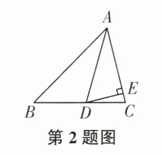2. 如图,在△ABC中,∠B= 45°,AD是△ABC的角平分线,DE⊥AC,垂足为点E.若DE= 2,则BD的长为 ()