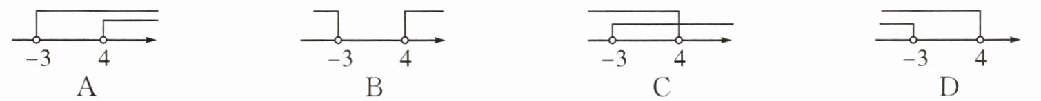 2. 已知点$P(2x+6,x-4)$在第四象限,则实数$x$的取值范围在数轴上表示正确的为 ()