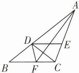 7. 如图所示,在$\triangle ABC$中,$D是AB$上的一点,且$AD= AC$,$DE// BC$,$CD平分\angle EDF$,求证:$AF垂直平分CD$.