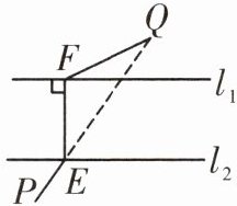3. 如图,直线$l_{1},l_{2}$表示一条河的两岸,且$l_{1}// l_{2}$. 现要在这条河上建一座桥(桥与河的两岸相互垂直),使得从村庄$P经桥过河到村庄Q$的路程最短,应该选择路线 ()