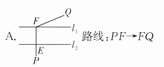 C. 路线:PE→EF→FQ