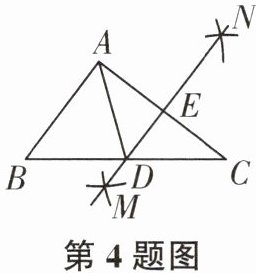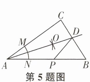 5. 如图,在$\text{Rt}\triangle ABC$中,$\angle C= 90^{\circ}$,以$A$为圆心,任意长为半径画弧,分别交$AC$,$AB于点M$,$N$,再分别以$M$,$N$为圆心,大于$\frac{1}{2}MN$的长为半径画弧,两弧交于点$O$,作射线$AO交BC于点D$,若$CD= 2$,$P为AB$上一动点,则$PD$的最小值为______.
