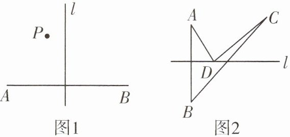 (2)如图$2$,直线$l是线段AB$的垂直平分线,点$C在直线l$外,且与点$A在直线l$的同侧,点$D是直线l$上的任意一点,连接$AD$,$BC$,$CD$,试判断$BC和AD+CD$之间的大小关系,并说明理由.