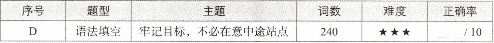 Life is the same. Even though we have many stops along the way, we don't need to worry about each one. We just need to remember our destination and keep 10.____ (move) forward.