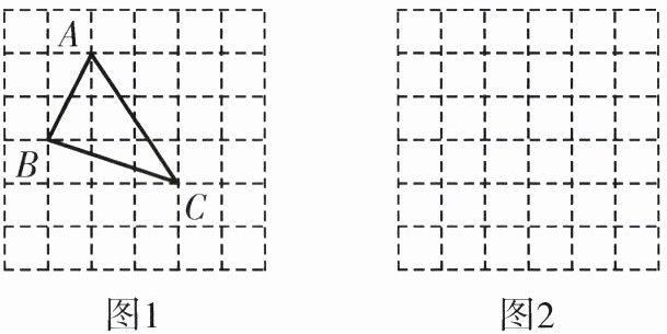18. 如图1,是小辉同学在正方形网格中(每个小正方形的边长为1),画出的格点$\triangle ABC$($\triangle ABC$的三个顶点都在正方形的顶点处)已知$AB,BC,AC$三边的长分别为$\sqrt{5},\sqrt{10},\sqrt{13}$,请你参照小辉的方法在图2的正方形网格图中画出格点三角形$\triangle DEF$,使得$DE,EF,DF$三边的长分别为$\sqrt{2},\sqrt{8},\sqrt{10}$,然后回答下列问题。