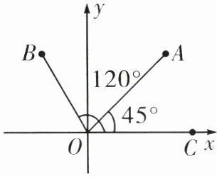 18. 如图,在平面直角坐标系中,$OA = 8$,$OB = 6$,$\angle COA = 45^{\circ}$,$\angle COB = 120^{\circ}$,求$A$,$B$两点的坐标。