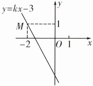 14. 如图,一次函数$y = kx - 3$的图象经过点M。