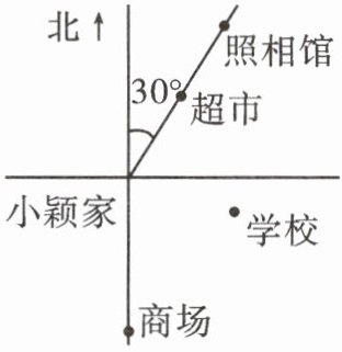 (1)小颖家北偏东$30^{\circ }$的方向上有
