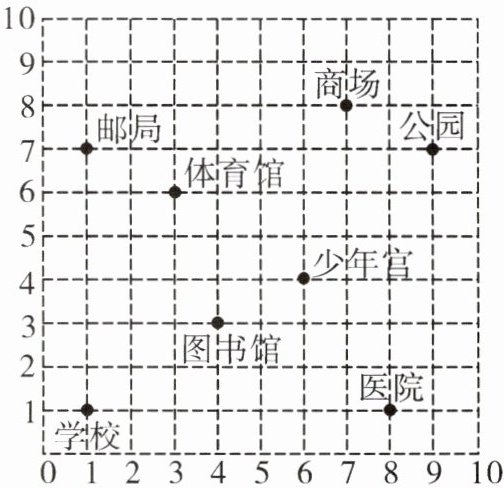 如果用$(4,3)$表示图书馆的位置,用$(8,1)$表示医院的位置,那么$(7,8)$表示