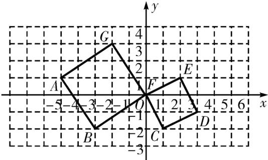 7. 如图,点$A,B,C,D,E,F,G$为正方形网格图中的7个格点。建立平面直角坐标系,使点$B,C$的坐标分别为$(-3,-2)$和$(1,-2)$。