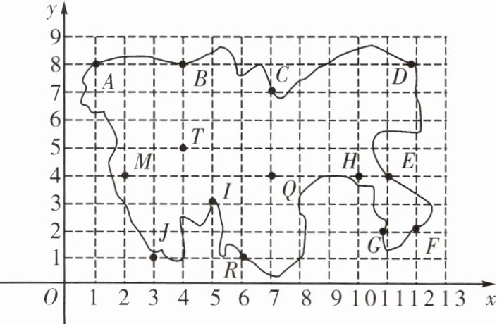 (2)$(2,4),(5,3),(7,7),(1,8)$所代表的地点分别为: