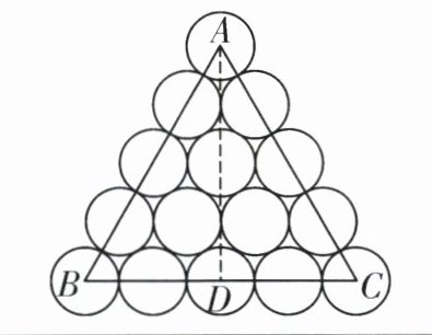 |解决方法二|某小组同学根据油桶的摆放方式,绘制了如下截面图,$A,B,C$三点都是对应圆的圆心,$AD\perp BC$。|