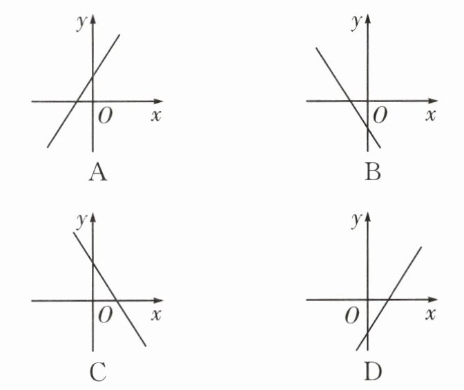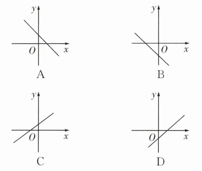3. 已知一次函数$y = kx + 1$,$y$随着$x$的增大而减小,则在直角坐标系内它的大致图象是(
