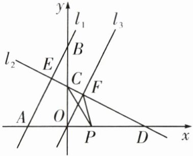 8. 已知直线$l_{1}:y=kx+b$与直线$l_{2}:y=-\frac {1}{2}x+m$都经过$E(-\frac {4}{5},\frac {12}{5})$,直线$l_{1}$交x轴于点A,交y轴于点$B(0,4)$,直线$l_{2}$交y轴于点C,交x轴于点D。直线$l_{3}// $直线$l_{1}$且经过原点,且与直线$l_{2}$交于点F,点P为x轴上任意一点,连接PC,PF。对于以下结论,错误的是 (