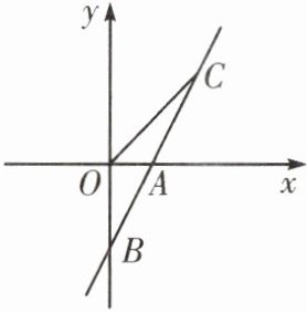 所以$\frac{1}{2}$·OA·y = 4,解得y = 4,把y = 4代入y = 2x −4得2x−4 = 4,解得x = 4,