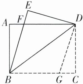 将折叠的图形恢复原状,点$F$与$BC$边上的点$G$正好重合,则$BF = BG$,$DF = DG$。