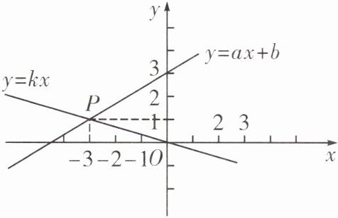 4. 如图,函数$y= ax+b和y= kx的图象交于点P$,则根据图象可得关于$x$,$y的二元一次方程组\begin{cases}ax-y+b= 0,\\kx-y= 0\end{cases}$的解是(