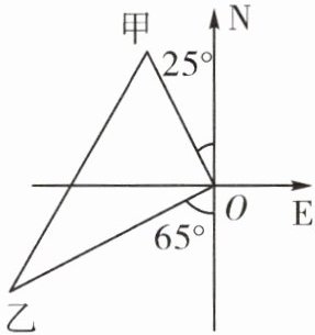 1. 如图,轮船甲从港口$O$出发沿北偏西$25^{\circ}$的方向航行$8n mile$,同时轮船乙从港口$O$出发沿南偏西$65^{\circ}$的方向航行$15n mile$,这时两轮船相距