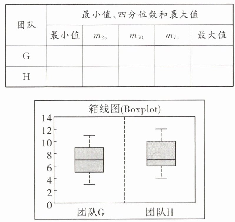 团队 H 的平均数和上四分位数更大,箱线图整体偏上,说明团队 H 收益更高,但稳定性不如团队 G。