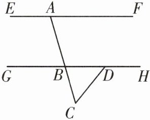 2. 如图,直线$EF// GH$,点A在EF上,AC交GH于点B,若$∠EAB=110^{\circ },∠C=60^{\circ }$,点D在GH上,求$∠BDC$的度数。