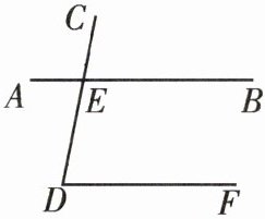 1. 如图,直线AB,CD相交于点E,$DF// AB$。若$∠AEC=100^{\circ }$,则$∠D$的度数为(
