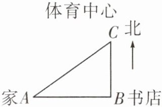 8. 如图,小明计划周末到位于他家正东方向$800m$的书店买书,买完书后再去位于书店正北方向$600m$的体育中心打篮球,求小明家距离体育中心有多远?