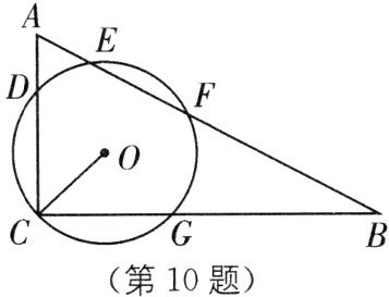 10. 如图,在$Rt\triangle ABC$中,$\angle ACB = 90^{\circ}$,$O为\triangle ABC$角平分线的交点,以$OC为半径的\odot O交\triangle ABC于点D$,$E$,$F$,$G$。