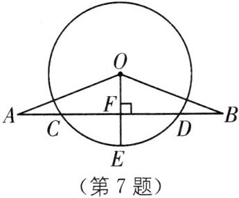 7. (2025·江西南昌 28 中教育集团期末)如图,$AO = BO$,$\odot O交AB于C$,$D$两点,半径$OE\perp AB于点F$。求证:$AC = BD$。