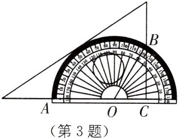 3. 中考新考法 利用工具进行操作探究如图,将一块三角板和半圆形量角器按图中方式叠放,三角板的一直角边与量角器的零刻度线所在直线重合,AB对应的圆心角($∠AOB$)为$120^{\circ }$,OC的长为3,则图中AB的长是____.