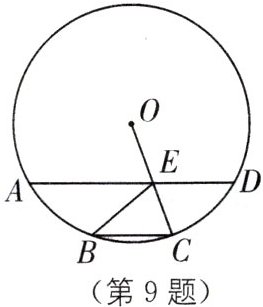 9. 如图,已知在$\odot O$中,$\widehat {AB}= \widehat {BC}= \widehat {CD}$,OC与AD相交于点E.求证: