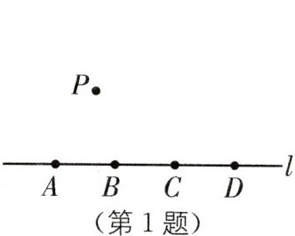1. (2023·江西中考)如图,点A,B,C,D均在直线l上,点P在直线l外,则经过其中任意三个点,最多可画出圆的个数为(