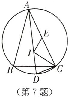 7. (2025·山东聊城四校联考期中)如图,点I为$△ABC$的内心,连接AI交$△ABC$的外接圆于点D,若$AI= 2CD$,点E为弦AC的中点,连接EI,IC,若$IC= 6,ID= 5$,则IE的长为____.