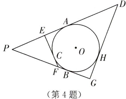 4. 教材P100例2·变式 如图,$\odot O是△GDP$的内切圆,切点分别为A,B,H,切线EF与$\odot O$相切于点C,分别交PA,PB于点E,F.